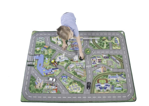 With at least 20 icons per city and the use of more than 50 colors, you get a unique item. Each rug, also called a play rug or traffic rug, has a spacious size of 115 cm x 175 cm, is excellently finished with anti-slip on the underside and is recyclable. Play mats also stimulate many skills in your baby, toddler or preschooler, but above all it is a lot of fun. The play mats are made of anti-allergen and environmentally friendly fabrics.