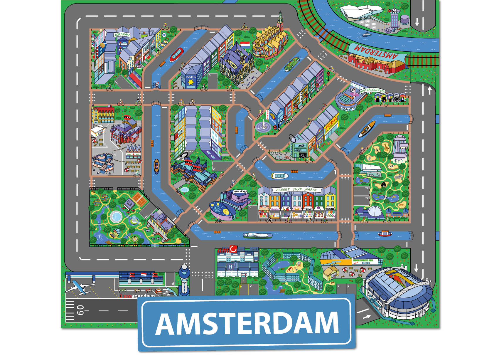 Na het uitchecken op Schiphol, direct lekker scheuren over de grachten van Amsterdam. Even je boodschapjes op de Albert Cuyp halen of een koffietje in de Jordaan. Het is allemaal mogelijk op hét speelkleed van Amsterdam. Van ieder speelkleed van Amsterdam gaat er €1,- naar Stichting Steun Emma Kinderziekenhuis.